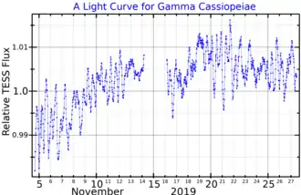 - ↑ Labadie-Bartz, Jonathan; Baade, Dietrich; Carciofi, Alex C.; Rubio, Amanda; Rivinius, Thomas; Borre, Camilla C.; Martayan, Christophe; Siverd, Robert J. (March 2021). "Short-term variability and mass loss in Be stars – VI. Frequency groups in γ Cas detected by TESS". Monthly Notices of the Royal Astronomical Society. 502 (1): 242–259. arXiv:2012.06454. doi:10.1093/mnras/staa3913. Retrieved 23 July 2022.