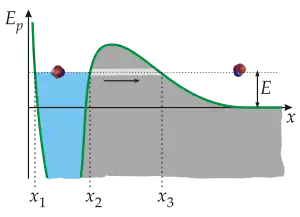 , which is where the nuclear negative potential energy is large enough so that the overall potential is smaller than E.
