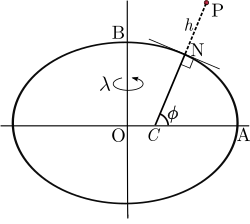 - is the geodetic latitude (the angle between the normal line of horizontal plane and the equatorial plane)