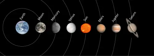 The Ptolemaic order of spheres from Earth outward is:[5]