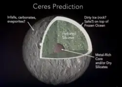 Ceres's oblateness is consistent with a differentiated body, a rocky core overlain with an icy mantle.[30]
