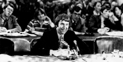 In 1977, O'Neill saw the peak of interest in space colonization, along with the publication of his first book, The High Frontier.[38] He and his wife were flying between meetings, interviews, and hearings.[6] On October 9, the CBS program 60 Minutes ran a segment about space colonies. Later they aired responses from the viewers, which included one from Senator William Proxmire, chairman of the Senate Subcommittee responsible for NASA's budget and an aggressive critic of government failure. His response was: "It's the best argument yet for chopping NASA's funding to the bone .... I say not a penny for this nutty fantasy".[53] He successfully eliminated spending on space colonization research from the budget.[54] In 1978, Paul Werbos wrote for the L-5 newsletter, "no one expects Congress to commit us to O'Neill's concept of large-scale space habitats; people in NASA are almost paranoid about the public relations aspects of the idea".[55] When it became clear that a government-funded colonization effort was politically impossible, popular support for O'Neill's ideas started to evaporate.[38]