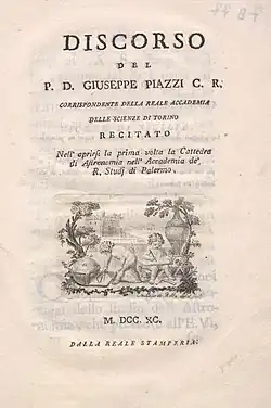 Giuseppe Piazzi CR (US: /ˈpjɑːtsi/ PYAHT-see,[1] Italian: [dʒuˈzɛppe ˈpjattsi]; 16 July 1746 – 22 July 1826) was an Italian Catholic priest of the Theatine order, mathematician, and astronomer. He established an observatory at Palermo, now the Osservatorio Astronomico di Palermo – Giuseppe S. Vaiana.[2] He is perhaps most famous for his discovery of the first dwarf planet, Ceres.