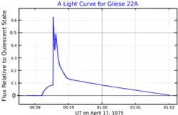 The discovery of flare activity on Gliese 22A was announced by Bjørn Ragnvald Pettersen in 1975,[1] which led to it being given a variable star designation, V547 Cassiopeiae, in 1977.[12]