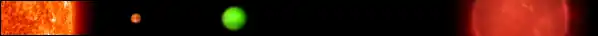 Gliese 777 c, often catalogued as Gliese 777 Ac or simply HD 190360 c, is an extrasolar planet approximately 52 light-years away in the constellation of Cygnus. The planet was discovered orbiting the primary star of the Gliese 777 system in 2005 using the radial velocity method and confirmed in 2009.[1][2] The planet was once called the "smallest extrasolar planet discovered", but this is currently no longer the case. With a minimum mass just 18 times that of the Earth, the planet is likely a "hot Neptune" planet, a small Jovian planet, or possibly a large terrestrial planet (a super-Earth).