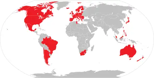 Google Earth has been released on macOS, Linux, iOS, and Android. The Linux version began with the version 4 beta of Google Earth, as a native port using the Qt toolkit. The Free Software Foundation considers the development of a free compatible client for Google Earth to be a High Priority Free Software Project.[61] Google Earth was released for Android on February 22, 2010,[62] and on iOS on October 27, 2008.[63][64] The mobile versions of Google Earth can make use of multi-touch interfaces to move on the globe, zoom or rotate the view, and allow to select the current location. An automotive version of Google Earth was made available in the 2010 Audi A8.[65] On February 27, 2020, Google opened up its web-based version of Earth to browsers like Firefox, Edge, and Opera.[66][67]