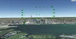 Google Earth shows 3D building models in some cities, including photorealistic 3D imagery made using photogrammetry.[27] The first 3D buildings in Google Earth were created using 3D modeling applications such as SketchUp and, beginning in 2009, Building Maker,[28] and were uploaded to Google Earth via the 3D Warehouse. In June 2012, Google announced that it would be replacing user-generated 3D buildings with an auto-generated 3D mesh.[29] This would be phased in, starting with select larger cities, with the notable exception of cities such as London and Toronto which required more time to process detailed imagery of their vast number of buildings. The reason given is to have greater uniformity in 3D buildings and to compete with Nokia Here and Apple Maps, which were already using this technology. The coverage began that year in 21 cities in four countries.[30] By early 2016, 3D imagery had been expanded to hundreds of cities in over 40 countries, including every U.S. state and encompassing every continent except Antarctica.