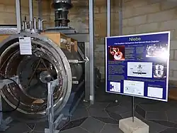The search for gravitational waves began in the 1990s and this detector, called NIOBE, was one of five set up around the world as part of that search. At its heart is a niobium bar. This niobium bar gravitational wave detector, and associated superconducting electromechanical sensors, were developed by Professor David Blair of UWA. It came into operation in 1993 after 16 years, 12 PhD projects and several million dollars to build. This worldwide experiment set limits to the strength of gravitational waves and paved the way for the next generation of detectors. They achieved world-record sensitivity and opened a new area of research into quantum measurement and optomechanics.[3] Note: Gravitational waves are ripples in the curvature of spacetime caused by huge cosmic events like the Big Bang and the collision of black holes.
