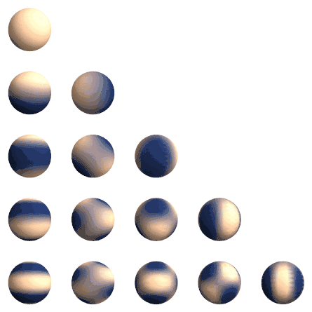 Rotating spherical harmonic, with for the vertical, and for the horizontal. For the Martian C20 and C30, they vary with time because of the seasonal variation of mass of the polar ice caps through the annual sublimation-condensation cycle of carbon dioxide.