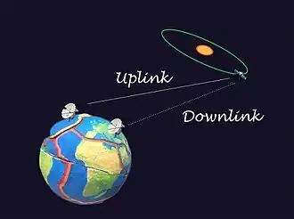 Doppler tracking is a common technique in tracking the spacecraft, utilizing radial velocity method, which involves detection of Doppler shifts.[13] As the spacecraft moves away from us along line of sight, there would be redshift of signal, while for the reverse, there would be blueshift of signal. Such technique has also been applied for observation of the motion of exoplanets.[17] While for the range tracking, it is done through measurement of round trip propagation time of the signal.[13] Combination of Doppler shift and range observation promotes higher tracking accuracy of the spacecraft.