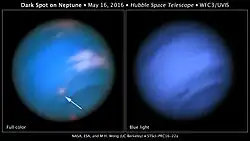 - ↑ "Dark spot on Neptune". ESA/Hubble. 27 June 2016. Retrieved 28 June 2016.