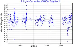 - ↑ Samus, N. N.; Durlevich, O. V.; et al. (2009). "VizieR Online Data Catalog: General Catalogue of Variable Stars (Samus+ 2007-2013)". VizieR On-line Data Catalog: B/GCVS. Originally Published in: 2009yCat....102025S. 1. Bibcode:2009yCat....102025S.