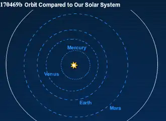 ![]() HD 170469 b's orbit compared to the orbit of Mars (1.5AU) in our Solar System. | |