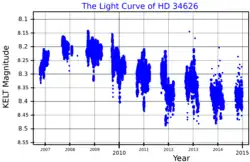A light curve for HD 34626 from KELT data, adapted from Labadie-Bartz et al. (2017)[1]