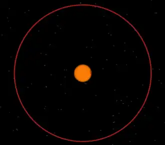 HD 38801 b is an extrasolar gas giant planet located in the constellation of Orion[3] whose discovery was announced in 2009 and was made using the radial velocity method.[4] The object, with a mass roughly 12 times that of Jupiter,[4] is located 324 light years (99.4 parsecs) from Earth[5][6] orbiting 1.65 astronomical units from its G-type star, HD 38801.[4][7] HD 38801 b, besides being the only planet in its system[5] also lies within the inner habitable zone[6] and takes around 1.9 years, or 693.5 days to complete a full orbit.[4]