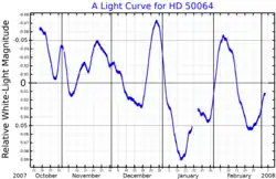 - 1 2 Halbedel, Elaine M. (1990). "Photometry of HD 50064 - A Be supergiant star with a P Cygni profile at H-alpha". Publications of the Astronomical Society of the Pacific. 102: 99. Bibcode:1990PASP..102...99H. doi:10.1086/132612. ISSN 0004-6280.