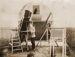![]() Patrick Hepburn at the observatory of the Hampstead Scientific Society circa 1910 | |