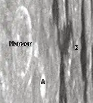 By convention these features are identified on lunar maps by placing the letter on the side of the crater midpoint that is closest to Hansen. All are in the east with the A being closer and the B being further.