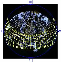 Photograph registration involves aligning the photographs with the hemispherical coordinate system used for analysis, in terms of translation (centering), size (coincidence of photograph edges and horizon in coordinate system), and rotation (azimuthal alignment with respect to compass directions).