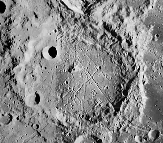 - ↑ The geologic history of the Moon. USGS Professional Paper 1348. By Don E. Wilhelms, John F. McCauley, and Newell J. Trask. U.S. Government Printing Office, Washington: 1987. Table 9-4.