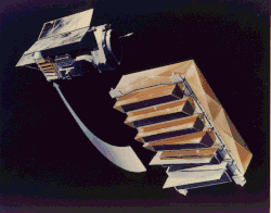 The A4, or Hard X-ray / Low Energy Gamma-ray Experiment, used sodium iodide (NaI) scintillation counters to cover the energy range from about 20 keV to 10 MeV.[6] It consisted of seven clustered modules, of three distinct designs, in a roughly hexagonal array.[7] Each detector was actively shielded by surrounding CsI scintillators, in active-anti-coincidence, so that an extraneous particle or gamma-ray event from the side or rear would be vetoed electronically, and rejected. (It was discovered in early balloon flight by experimenters in the 1960s that passive collimators or shields, made of materials such as lead, actually increase the undesired background rate, due to the intense showers of secondary particles and photons produced by the extremely high energy (GeV) particles characteristic of the space radiation environment.) A plastic anti-coincidence scintillation shield, essentially transparent to gamma-ray photons, protected the detectors from high-energy charged particles entering from the front.