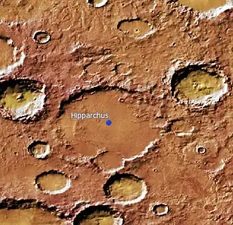 Hipparchus is an impact crater in the Phaethontis quadrangle of Mars, located at 44.8° S latitude and 151.4° W longitude. It is 93 kilometers (58 miles) in diameter. It was named after the ancient Greek astronomer Hipparchus in 1973.[1]