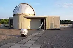The Hirsch Observatory is an astronomical observatory at Rensselaer Polytechnic Institute (RPI) in Troy, New York. It is located on the roof of the Jonsson-Rowland Science Center (seen below) and is used by members of the Rensselaer Astrophysical Society as well as astronomy students in laboratory exercises. It is frequently opened to the community for public viewing sessions.[1] The observatory's main dome contains a 16" Cassegrain Reflector, with a CCD camera and fully computerized controls. The observatory also owns a variety of smaller scopes and a SBIG Spectrograph. The spectrograph has been used to catalog bright solar spectrum as part of an effort to create an online digital database for astrophysical research. The current director of the observatory is Professor Heidi Newberg.
