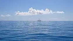which comes to almost exactly six metres. The observer can therefore see that part of the ship that is more than six metres above the level of the water. The part of the ship that is below this height is hidden from him by the curvature of the Earth. In this situation, the ship is said to be hull-down.
