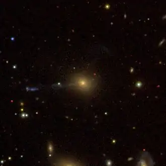 Additionally, IC 1182 contains large quantities of neural hydrogen which its distance-independent ratio of hydrogen mass to optical luminosity is equal to 0.7 times the solar ratio.[8] This could indicate it might be involved in a collision involving a gas-rich spiral galaxy which gives rise to observed nuclear emission lines.[8]