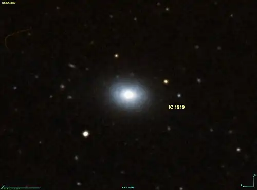 IC 1919 is an elliptical galaxy in the constellation of Fornax. It is 61 million light years distant from Earth and it is a member of Fornax Cluster, a cluster of approximately 200 galaxies.