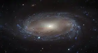 ![]() IC 2560's spiral arms and barred structure, as taken by Hubble Space Telescope
