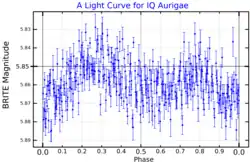 ![]() A light curve for IQ Aurigae from BRITE nanosatellites. Plotted from data published by Strassmeier et al. (2020),[1] assuming a period of 2.463 days. | |