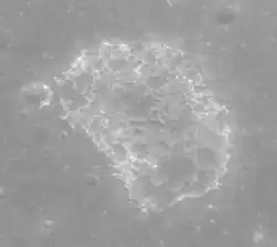 Ina is the most prominent, large and well-known representative of a class of features called irregular mare patches,[19] which are also known as "meniscus hollows" for the similarity of their edges to a convex meniscus.[20] Several dozen such features are known on the Moon, all located on the maria. They are hypothesized to be volcanic in origin but several alternative hypotheses exist (see Origin below) and their origin is far from certain.[19][20][21][22] Somewhat similar but distinct features, called hollows, are rather common on Mercury. These features differ from lunar meniscus hollows in having bright halos; they are also more widespread, often bigger and usually located in impact craters.[3][4][5]