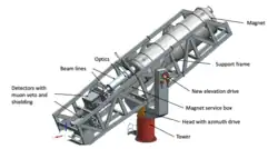 One of the two BabyIAXO optics will be based on a mature technology developed for NASA's NuStar X-ray satellite.[5] The signal from the 0.7 m diameter bore will be focused to 0.2 area.