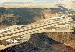 Inverted relief at former St. George Municipal Airport, Utah. The lava plateau upon which the airport was built once filled the bottom of a valley.