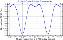 - 1 2 3 4 Drummond, Jack; Milster, Scott; Ryan, Patrick; Roberts, Jr., Lewis C. (2003). "ι Cassiopeiae: Orbit, Masses, and Photometry from Adaptive Optics Imaging in the I and H Bands". The Astrophysical Journal. 585 (2): 1007. Bibcode:2003ApJ...585.1007D. doi:10.1086/346224.