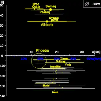 - 1 2 3 4 Sheppard, S. S. (2006). "Outer irregular satellites of the planets and their relationship with asteroids, comets and Kuiper Belt objects". Proceedings of the International Astronomical Union. 1: 319–334. arXiv:astro-ph/0605041. Bibcode:2006IAUS..229..319S. doi:10.1017/S1743921305006824. S2CID 2077114.