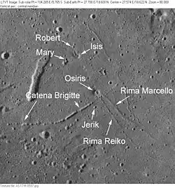 {{cite book}}: CS1 maint: multiple names: authors list (link) (Appendix A: Lunar dome images). - ↑ Isis, Gazetteer of Planetary Nomenclature, International Astronomical Union (IAU) Working Group for Planetary System Nomenclature (WGPSN)