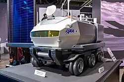 The Lunar Cruiser is a crewed pressurized rover being developed jointly by JAXA and Toyota that astronauts can drive on the Moon.[50] The Lunar Cruiser is being developed as a part of NASA's Artemis Program and will enable astronaut crews to take trips across the Moon lasting up to 45 days.[51] Named after the Toyota Land Cruiser, its name was chosen "because of the familiar feeling it offers the people involved in the development and manufacture of the vehicle prototype as part of the joint research project as well as the familiarity it will provide the general public." The rover is currently being manufactured, with an expected launch date in the latter half of the 2020s. The rover itself will use fuel-cell electric-vehicle technologies.[52][53]