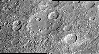 - ↑ Chapman, C. R., Baker, D. M. H., Barnouin, O. S., Fassett, C. I., Marchie, S., Merline, W. J., Ostrach, L. R., Prockter, L. M., and Strom, R. G., 2018. Impact Cratering of Mercury. In Mercury: The View After MESSENGER edited by Sean C. Solomon, Larry R. Nittler, and Brian J. Anderson. Cambridge Planetary Science. Chapter 9.