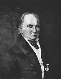 Benzenberg was born near Elberfeld, Germany on 5 May 1777 to Heinrich Benzenberg and Johanna Elisabeth. He married Charlotte Platzhoff in 1807. After studying theology at Herborn and Marburg, he travelled to Göttingen where he became interested in science through attending lectures by Georg Christoph Lichtenberg and Abraham Gotthelf Kästner. Benzenberg obtained a PhD from the University of Duisburg in 1800 and became a professor of mathematics at the women's college of Düsseldorf in 1805. After the Napoleonic occupation of Germany he immigrated to Switzerland where he became interested in politics.[1] Benzenberg's interest in politics led him to write extensively on issues such as the constitution of Prussia.[2] In 1844 Benzenberg built a private observatory, the Düsseldorf-Bilk Observatory, in Bilk, which he later donated to the city along with a grant to pay for a resident astronomer.[1]