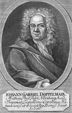 Johann Gabriel Doppelmayr (27 September 1677 – 1 December 1750) was a German mathematician, astronomer, and cartographer. (His surname is also spelled Doppelmayer and Doppelmair.)