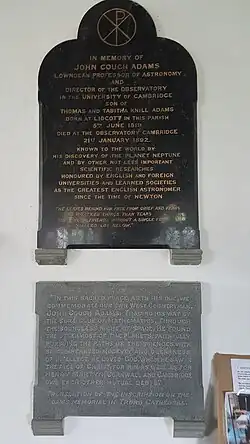 - ↑ "Adams, John Couch (ADMS839JC)". A Cambridge Alumni Database. University of Cambridge.