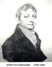 John Goldingham was a Dane. His original name was Johannes Guldenheim.[1] He succeeded Michael Topping as the Astronomer posted in Madras. Goldingham was put in charge of building an observatory in 1792, and later appointed as the Presidency Civil Engineer in 1800. Although a mathematician, he managed to learn both astronomy and engineering. He worked at around the same time as Colonel Lambton began the Trigonometrical Survey.