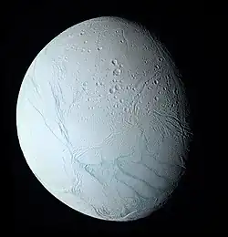 - ↑ Amos, Jonathan (April 3, 2014). "Saturn's Enceladus moon hides 'great lake' of water". BBC News. Retrieved 2014-04-07.