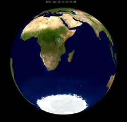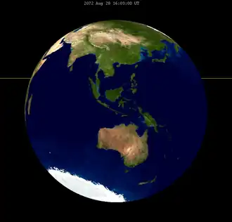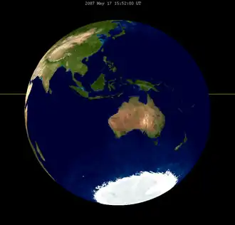 The eclipse was completely visible over Australia, Antarctica, and much of the Pacific Ocean, seen rising over Asia and eastern Africa and setting over western North and South America.[4]