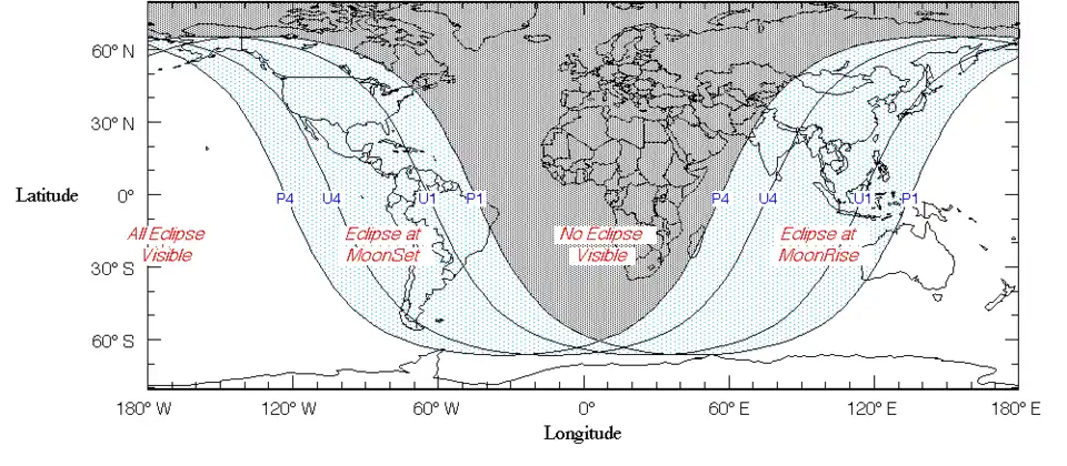 The eclipse was completely visible over much of Australia and the Pacific Ocean, seen rising over Asia and setting over North and South America.[3]