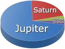 The Jupiter mass, also called Jovian mass, is the unit of mass equal to the total mass of the planet Jupiter. This value may refer to the mass of the planet alone, or the mass of the entire Jovian system to include the moons of Jupiter. Jupiter is by far the most massive planet in the Solar System. It is approximately 2.5 times as massive as all of the other planets in the Solar System combined.[2]