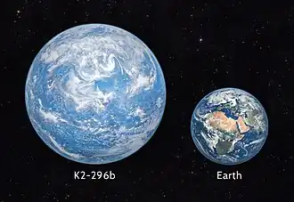 ![]() Size comparison of the planet K2-296b (artistic concept) with Earth | |