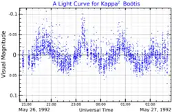 A visual band light curve for Kappa2 Boötis, adapted from Frandsen et al. (1995)[15]